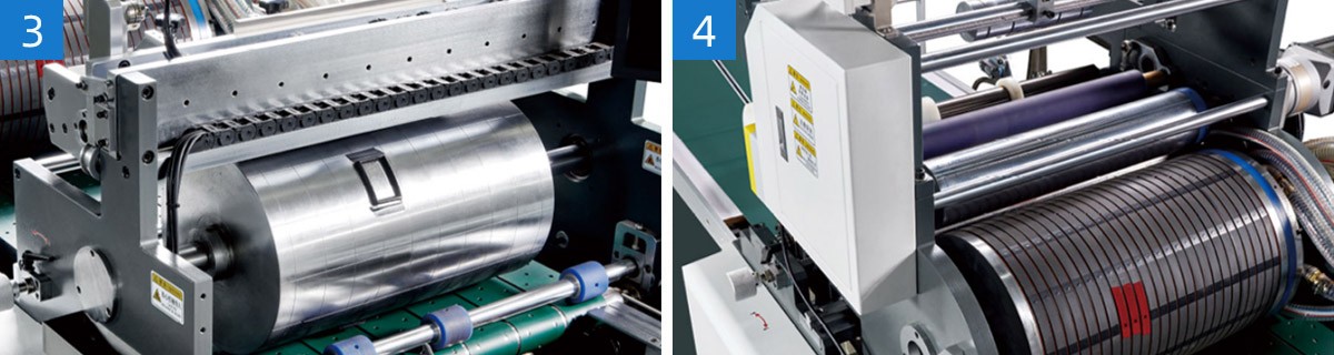 Utilizing independent servo drives, the system digitally adjusts the length and size of the adhesive film. Separate servo drives operate the rotary cutter for precise cutting, featuring a variable three-speed operation that allows for on-the-fly adjustments to the front, back, left, and right positions of the adhesive film. The suction box incorporates advanced German technology, enabling segmented opening and closing functions. The unique principle employed in the vacuum suction of the adhesive film ensures more stable bonding. Additionally, it is equipped with a function to cut the adhesive film in the middle (such as for facial tissue boxes) and a tracking and positioning function for printing adhesive films.