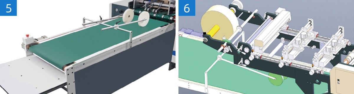 Utilizing independent servo drive, a single high-hardness stainless steel glue hose roller transfers glue, allowing for adjustment of glue thickness according to product requirements. Flexible stencil printing is employed, and the roller on which the stencil is installed is engraved with reference lines. Photoelectric sensing is automatically activated. During the glue application process, the roller will automatically retract when there is no paper, and the front and rear positions of the glue can be digitally adjusted within the human-machine interface. Additionally, the left and right positions of the glue can be adjusted without stopping the machine. The glue roller can be pulled out in parallel for easy cleaning.